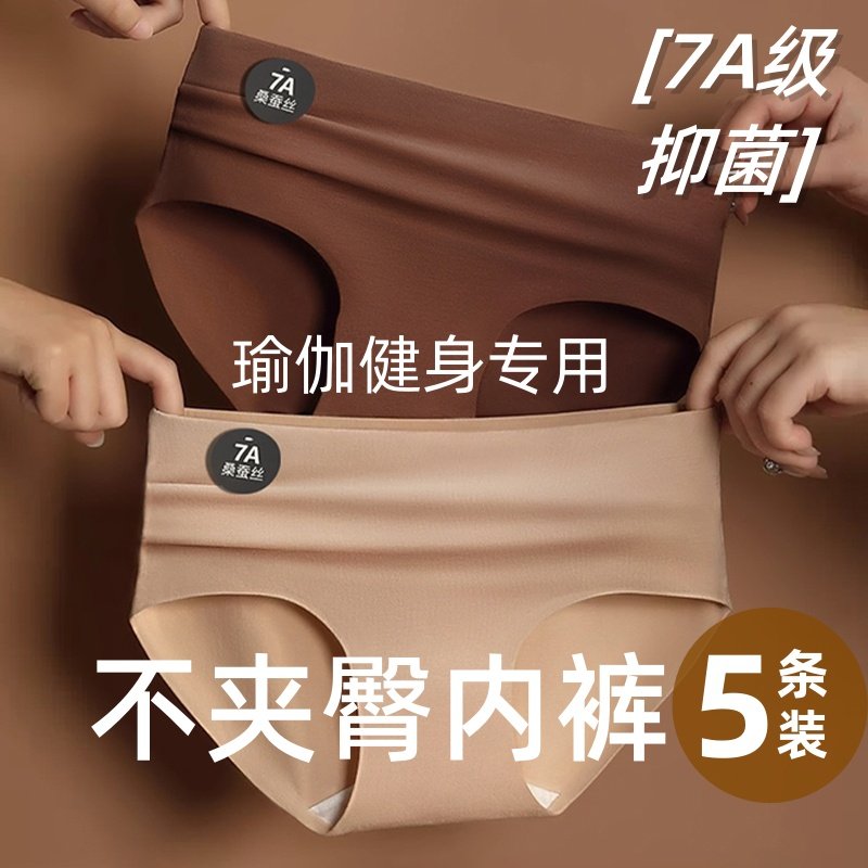 Seamless underwear women's sports yoga pro-wear comfortable non-buttocks ice silk antibacterial crotch 7A mulberry silk mid-rise shorts