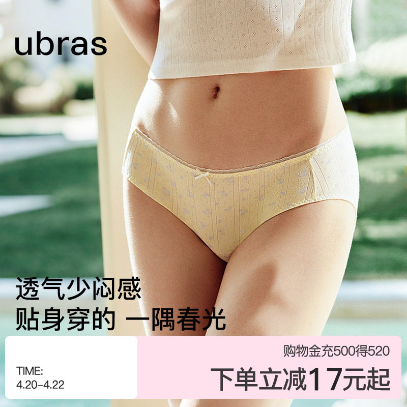 ubras underwear women's cotton-felt hollow jacquard breathable new printed cotton antibacterial crotch mid-low rise briefs