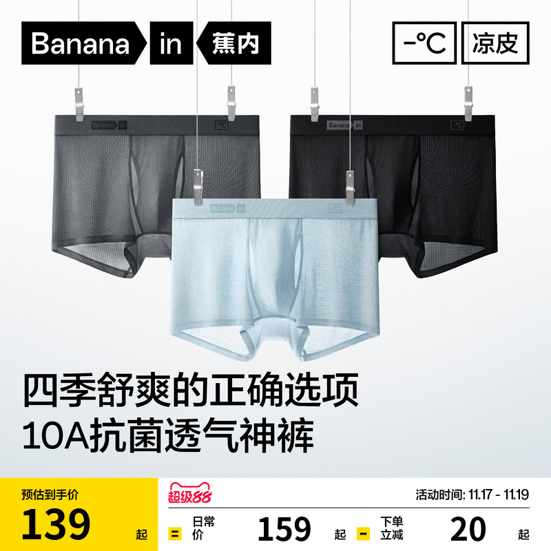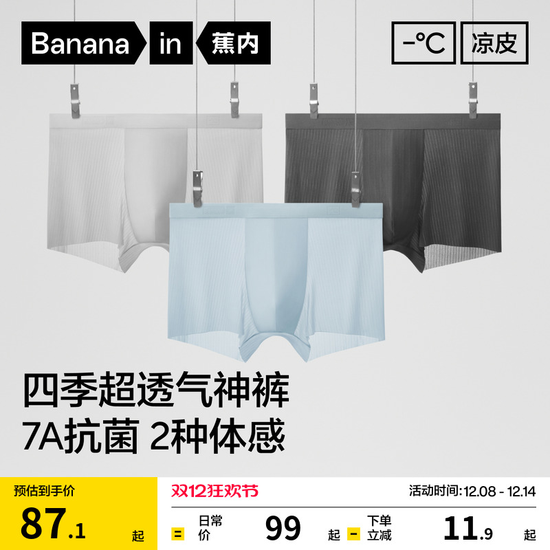 3 pieces|Banana cool leather 311CA men's flat angle ice silk underwear modal cotton breathable boxer shorts boys