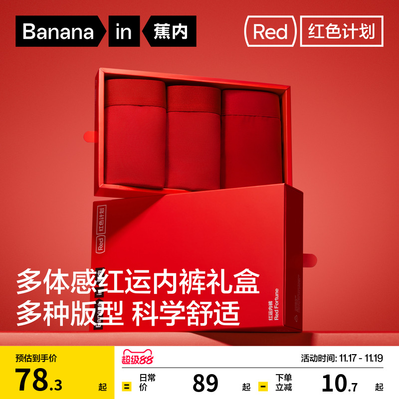 Gift box|Banana red plan 3 series men's and women's underwear Modal cotton breathable crotch natal year wedding red underwear