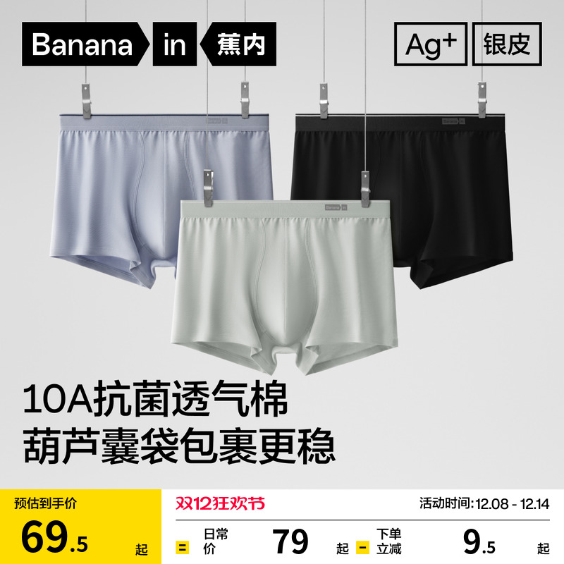 3 pieces|Banana silver leather 300S boxer underwear men's cotton breathable crotch pants boxer shorts boys