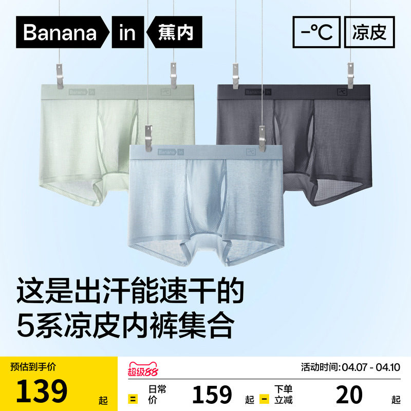 3 pieces|Banana Cool Leather 311CA Men's Ice Silk Panties Modal Cotton Breathable Crotch Square Shorts Boys