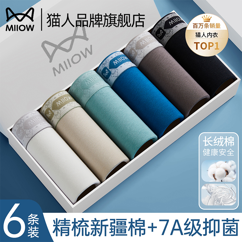 Cat Man Men's Underwear Pure Cotton 2025 New Boys Breathable Antibacterial Men's Square Corner Boxer Men's Pants Plus Size