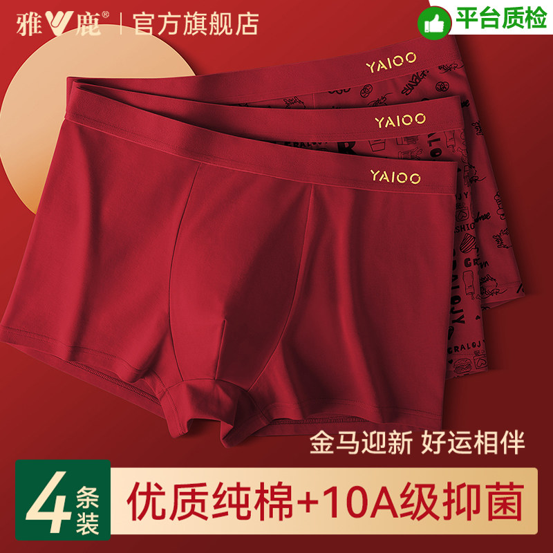 Yalu men's underwear natal year red luck cotton boxer shorts 2026 new Year of the Horse wedding gift