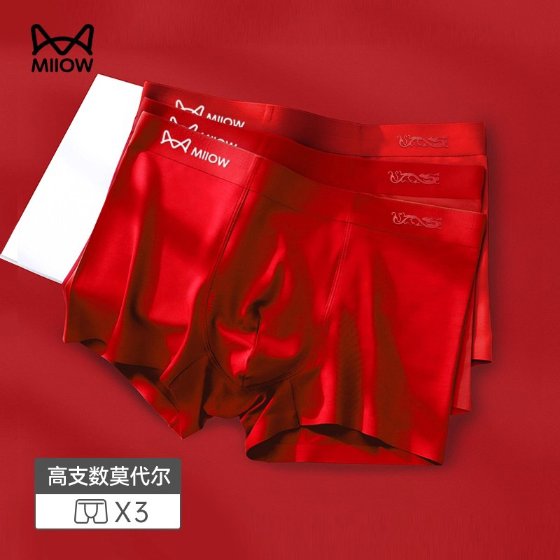 Cat Man Natal Year Red Panties Men's Red Ice Silk Boxer Underwear 2025 Boys Get Married Shorts for the Year of the Snake