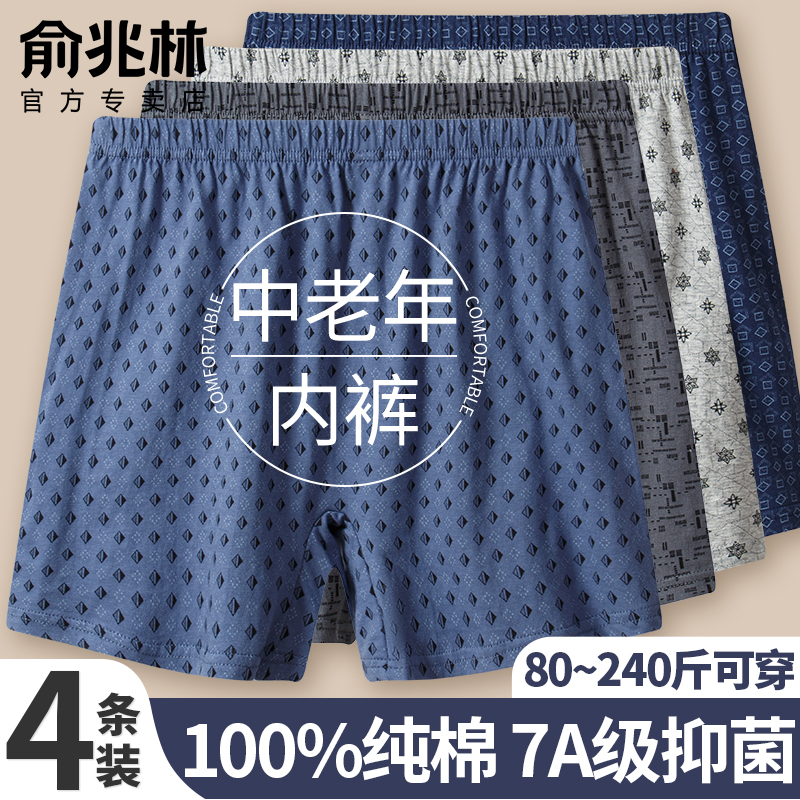Middle-aged and elderly men's underwear, men's cotton boxers, dad loose breathable shorts, fattened plus size boxers