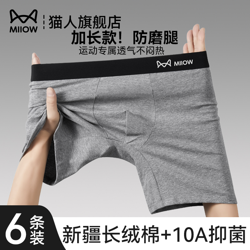 Cat Man Men's Underwear Cotton Extended Anti-Abrasion Leg Sports Breathable Boxers 2025 New Plus Size Boxer Shorts