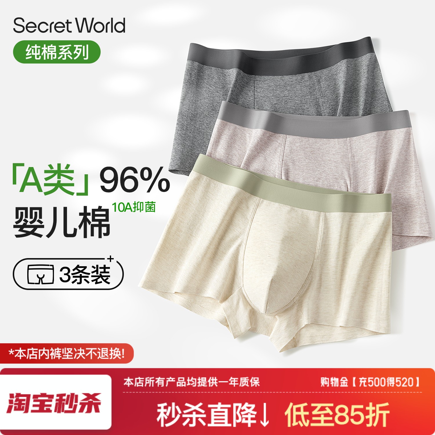 3 pieces|Banana silver leather 511S men's underwear new cotton breathable boxer sports boxer shorts high-end boys