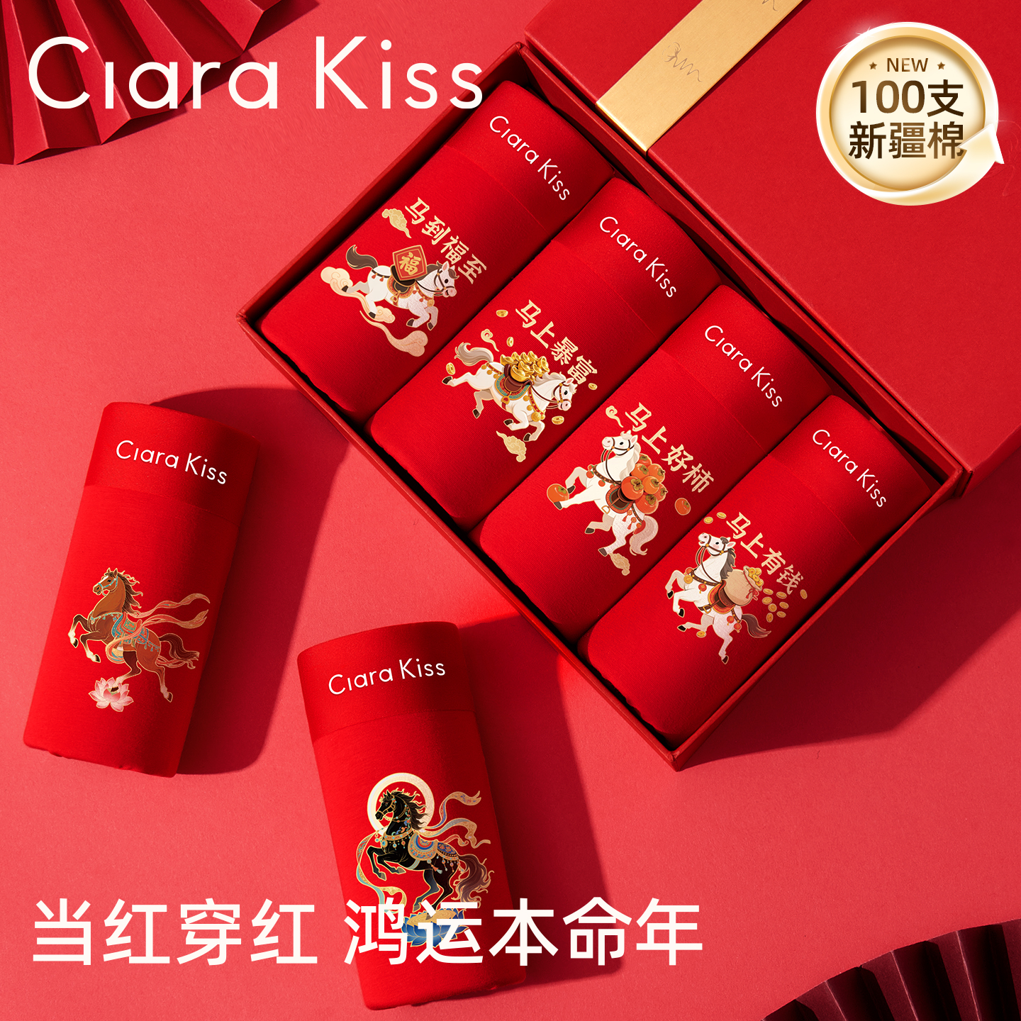 Clara Kiss Men's Panties Red Natal Year Gift Pure Padded Crotch 2026 New Year of the Horse Shorts Gift Box