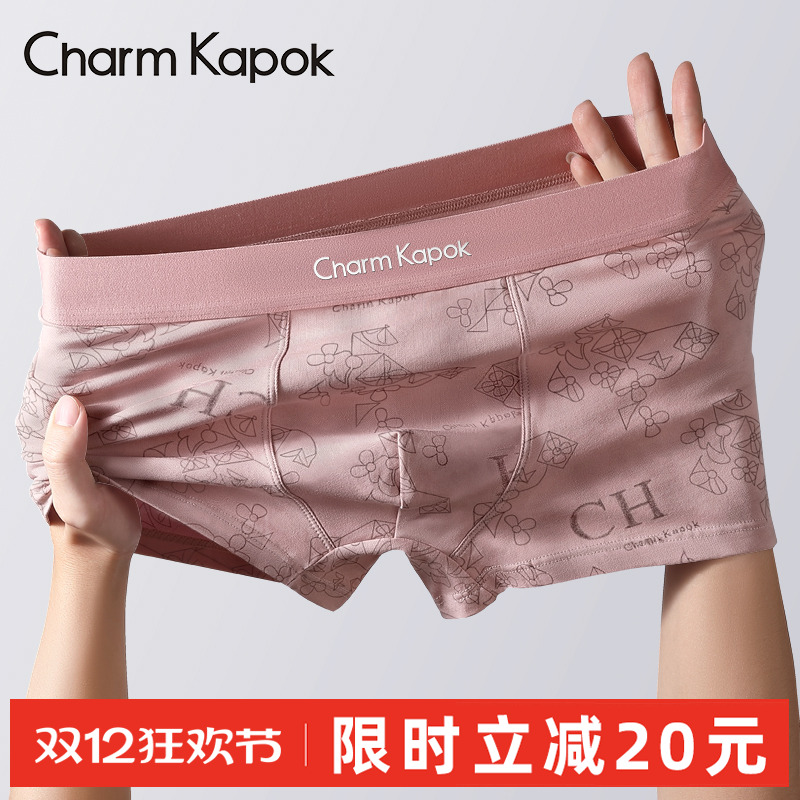 CharmKapok Men's Underwear 100% Cotton Cotton Crotch Antibacterial Boxer Square Pink Printed Shorts Gift Box