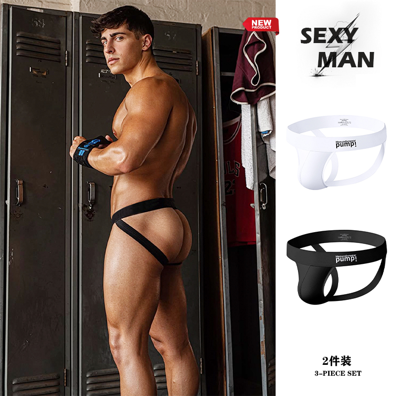 2 strips of ink cotton thong men's double underwear white boys sexy back hollow men's trousers new style