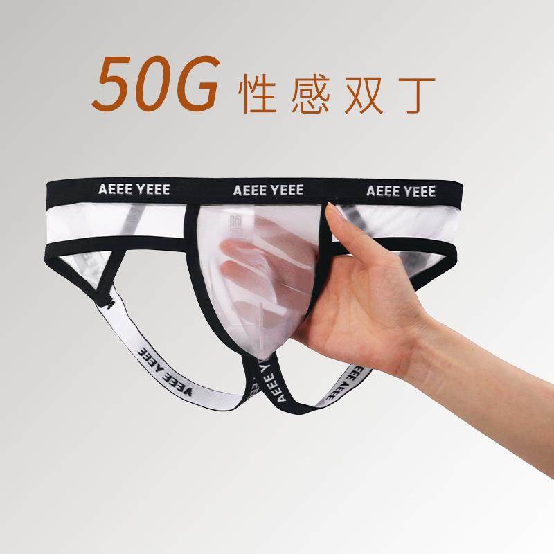 Ayi 2025 new low-rise single thong underwear men's summer sexy quick-drying breathable T-pants ice silk ultra-thin and transparent