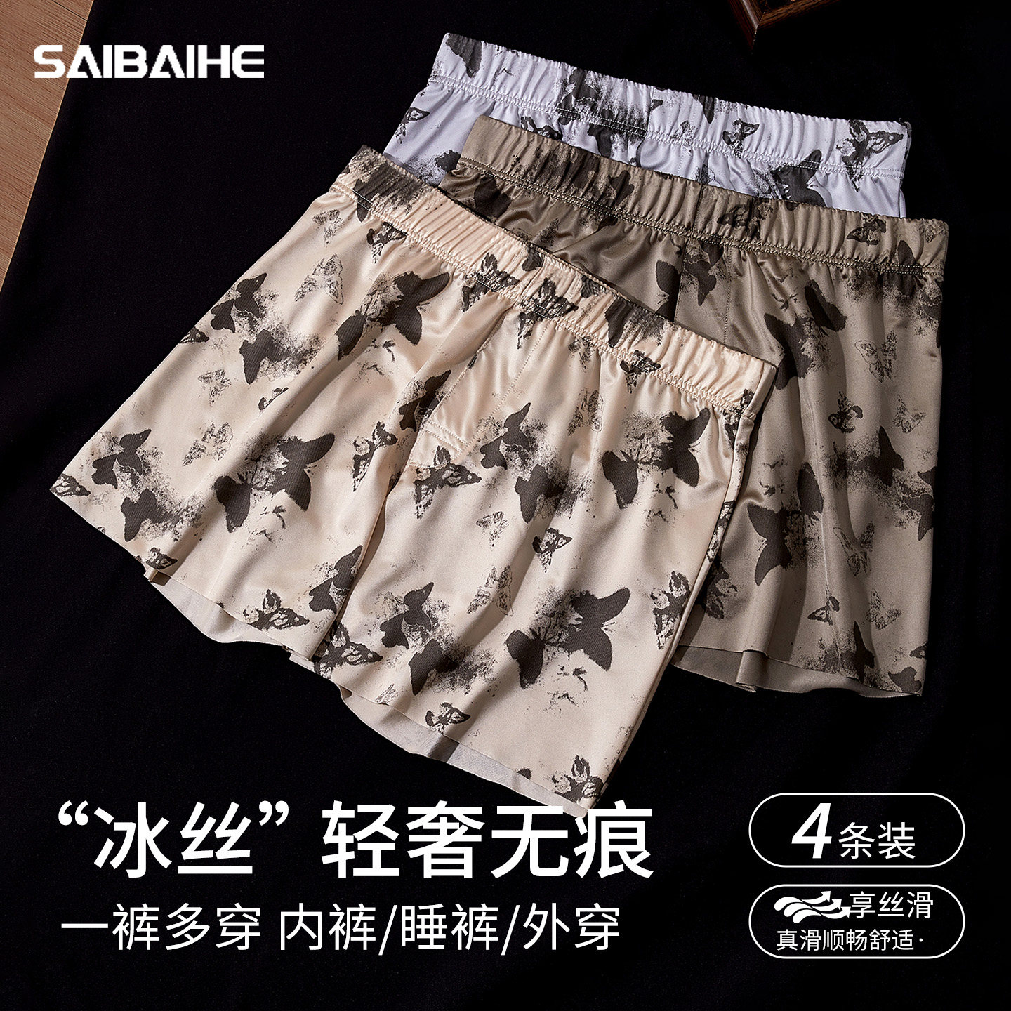 Butterfly satin arrow pants, men's underwear, ice silk, naked sleeping, plus-size home pajamas, loose sports boxer shorts