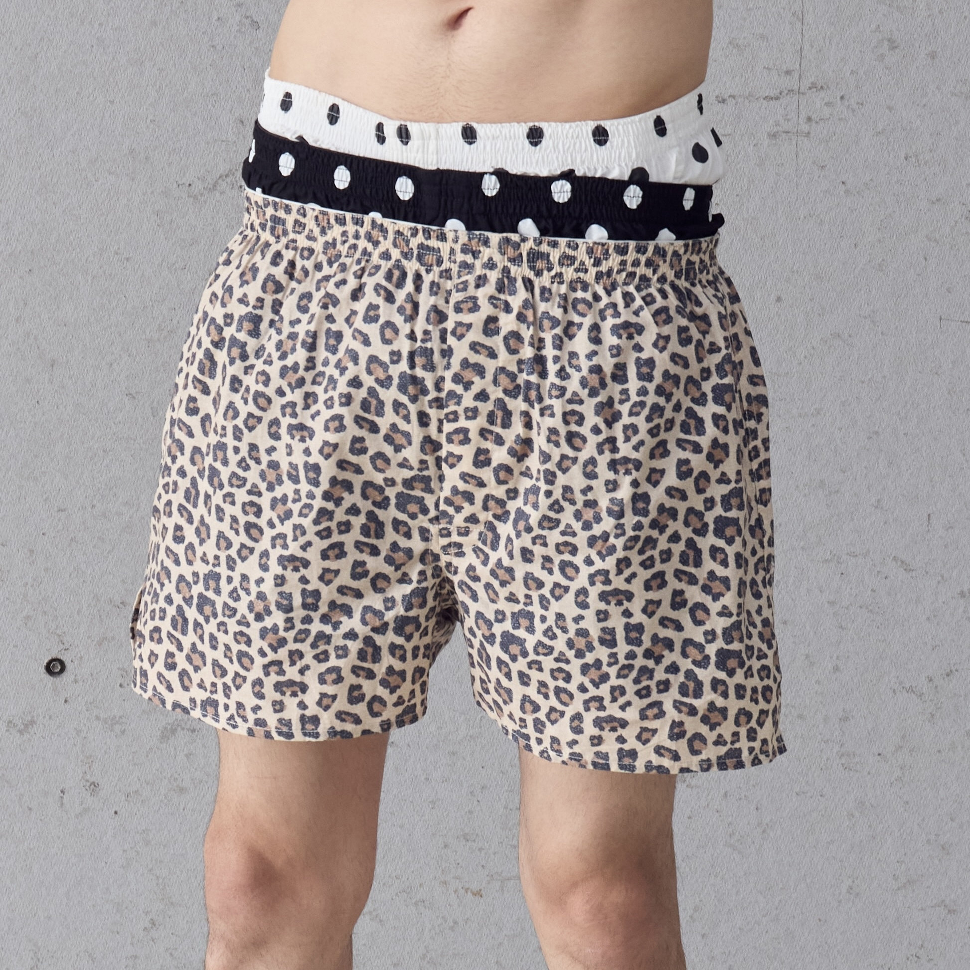 Leopard print arrow pants, pure cotton men's loose boxer underpants, women's home couple short pajamas and large pants, double smoke