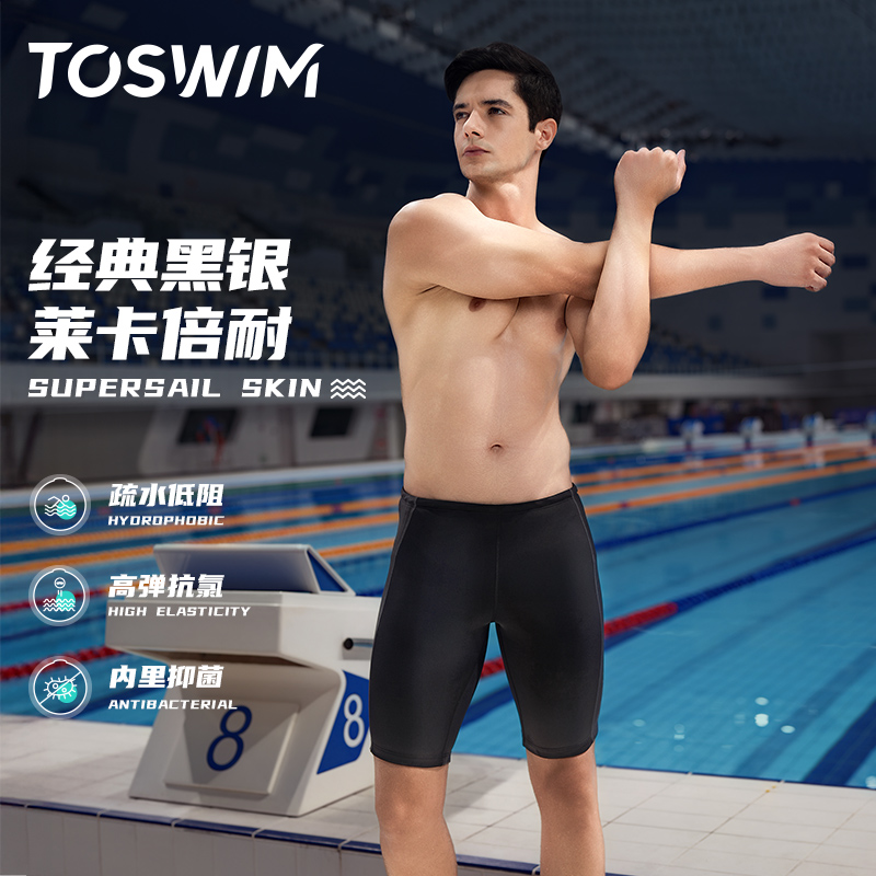 TOSWIM professional swimming trunks men's racing five-point swimming goggles swim cap swimming trunks three-piece swimming equipment men's full set