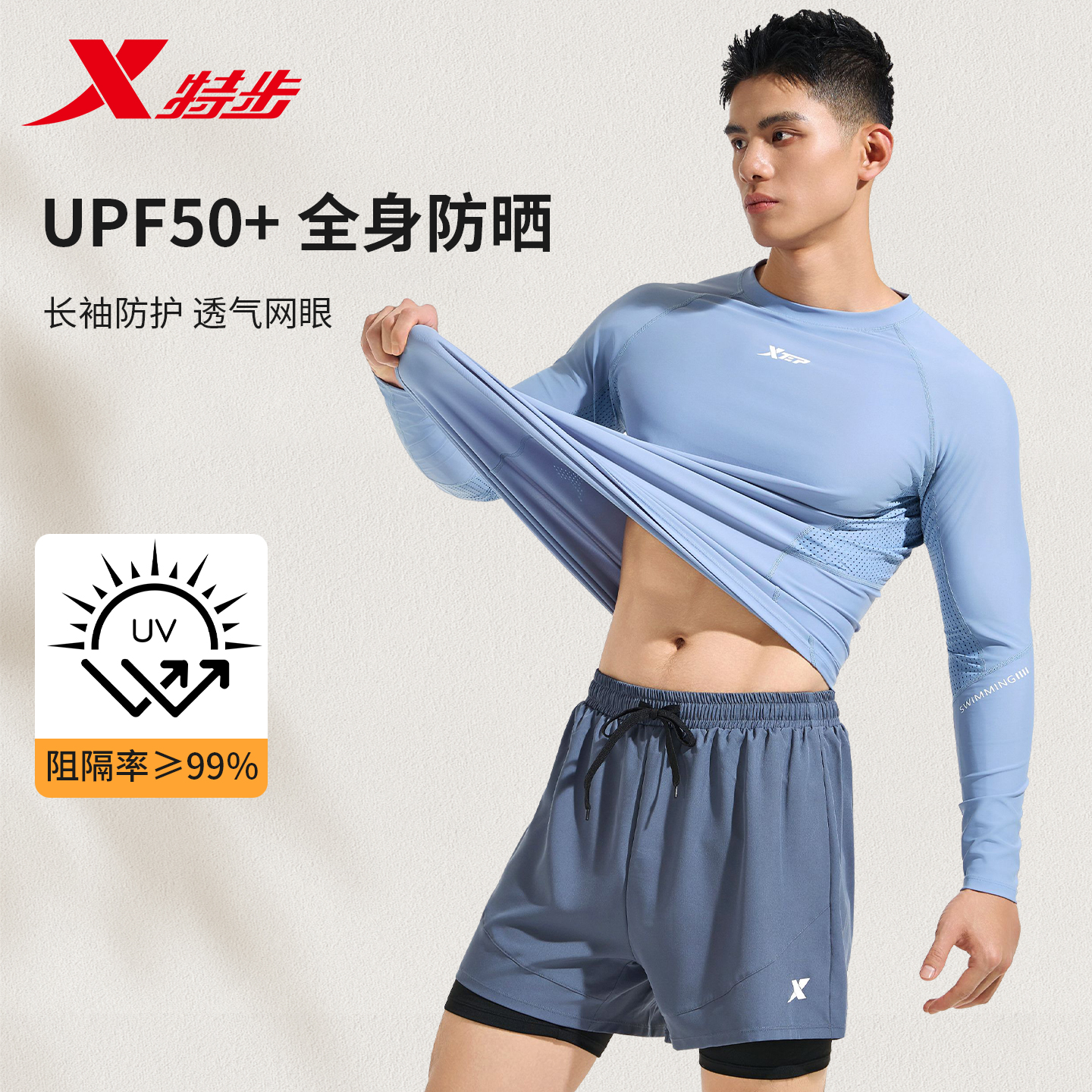 Xtep swimsuit men's long sleeve sunscreen suit adult anti-embarrassment swim trunks teen swimsuit boys' swim top