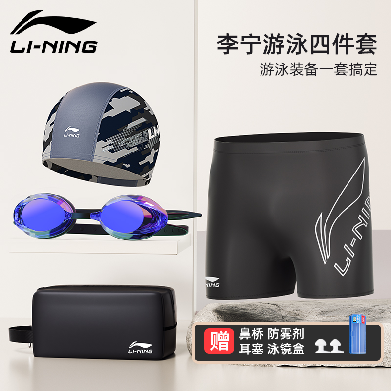 Li Ning swimming trunks men's three-piece set of men's swimming caps and swimming goggles swimsuit set professional swimming equipment men's full set