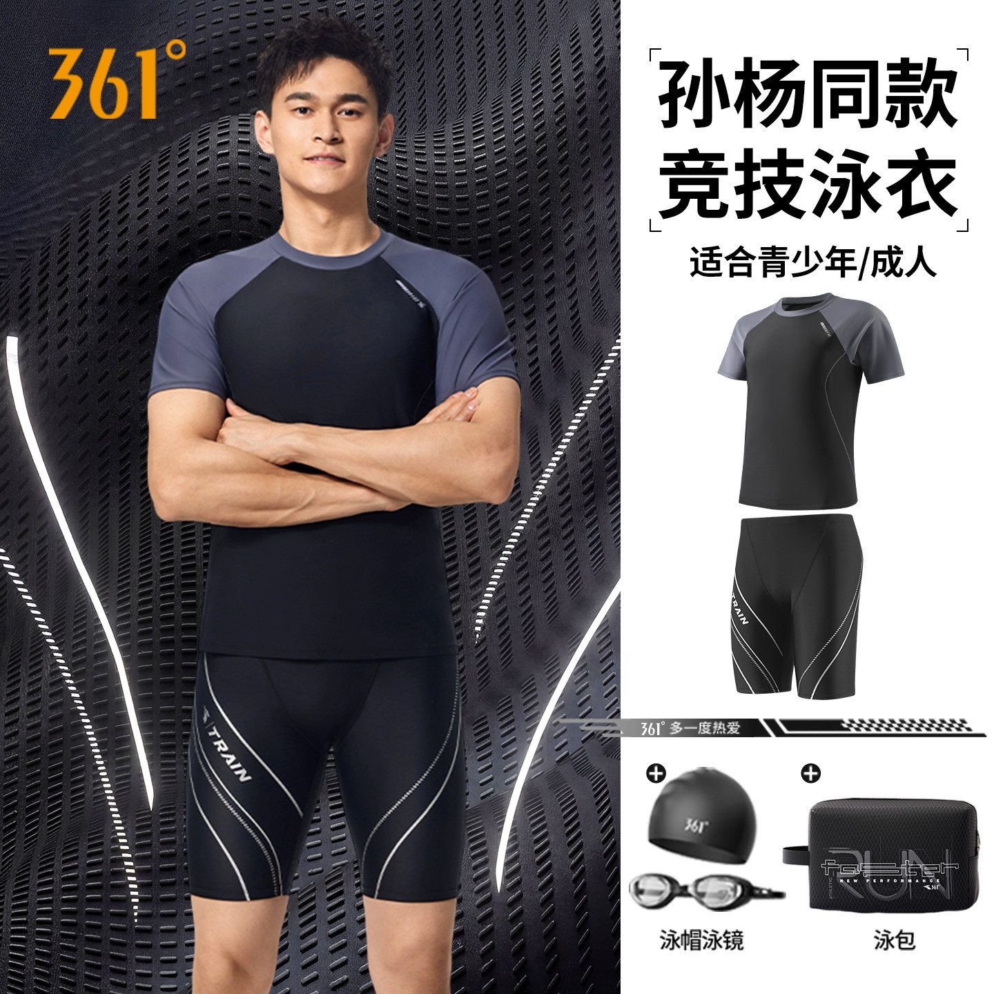 361 Sun Yang's same men's swimsuit five-point swimming trunks adult men's youth hot spring plus-size full set of equipment