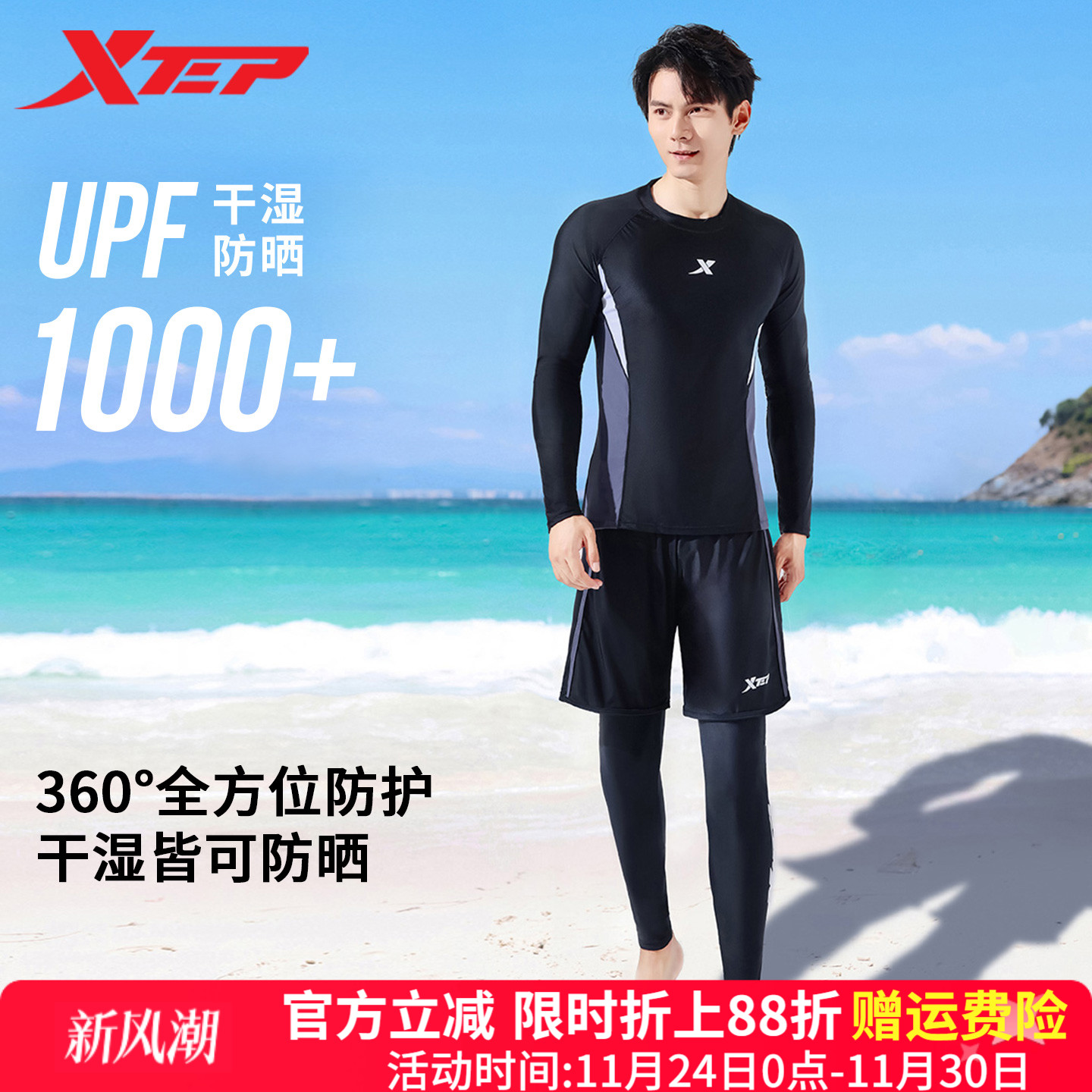 Xtep Men's Swimsuit 2025 New Suit Slimming Quick Drying Long Sleeve Pants Swim Trunks Professional Swimming Wetsuit