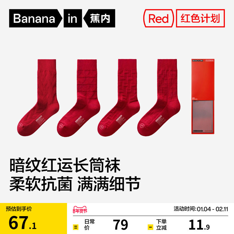 Banana red plan 521S men's and women's socks for the Year of the Horse Natal Year gift wedding stockings autumn and winter new cotton socks