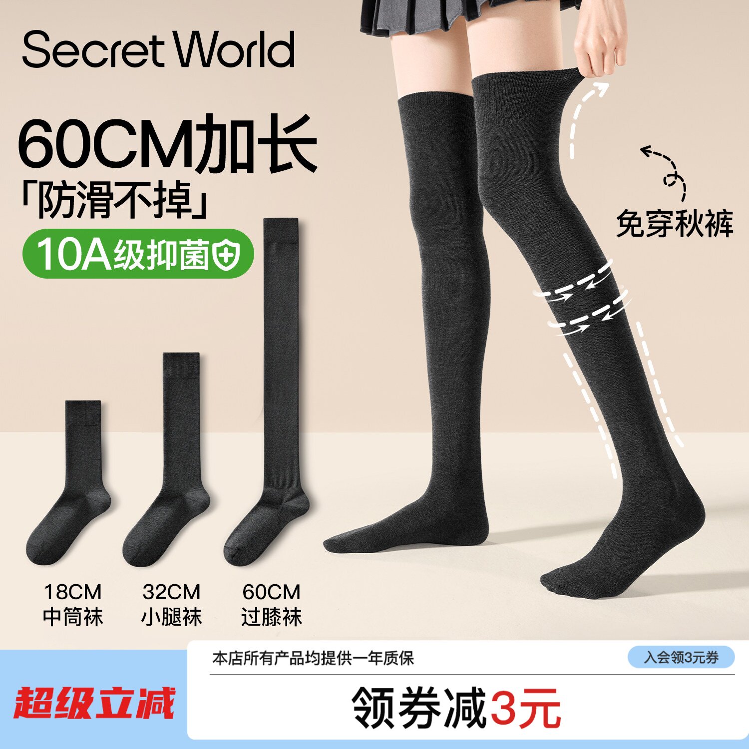 Over the knee socks women's tall long tube spring and autumn style Japanese milky white with boots Long leg socks autumn and winter anti-slip pile stack stockings