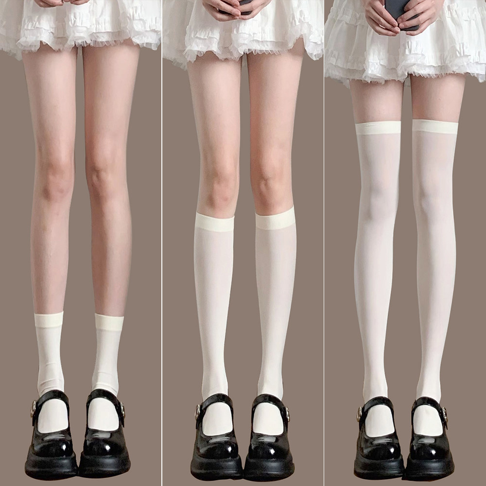 Milk white socks women's spring and autumn thin long stack socks medium stockings JK loafers calf socks white stockings