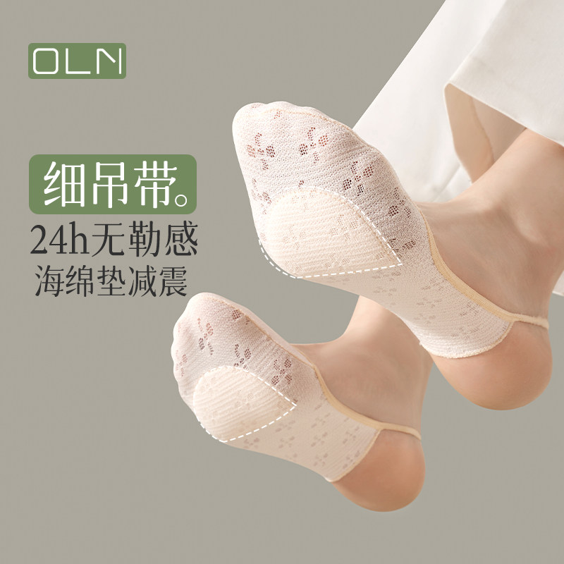 Sole foam pad suspender invisible boat socks women's summer thin non-dropping heel sweat-absorbing cotton sole mesh high heel socks