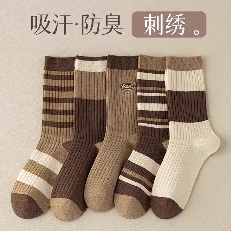 Autumn and winter socks Maillard color mid-leg socks are versatile and simple and thickened stacked socks are frozen preppy style brown stockings