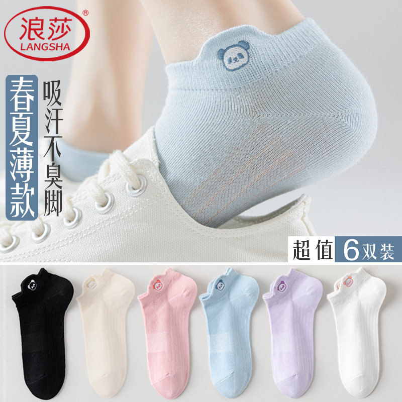 Langsha socks women's summer thin boat socks invisible breathable mesh anti-odor spring and autumn cute cartoon socks do not drop heels