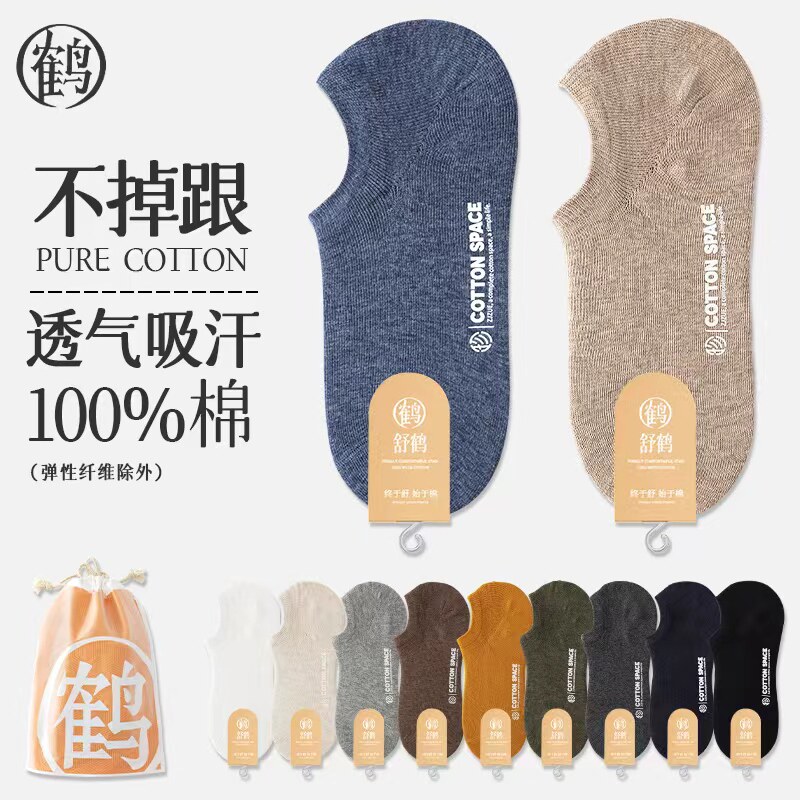 Boat socks men's socks pure cotton bottom ice silk summer thin invisible non-slip heel anti-odor sweat breathable and traceless
