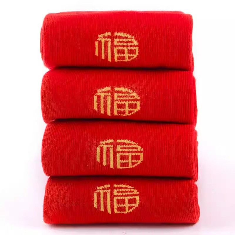 Natal New Year Socks Blessing Socks New Year's Luck Red Socks Men's and Women's Couple Socks Medium Red Gift Socks