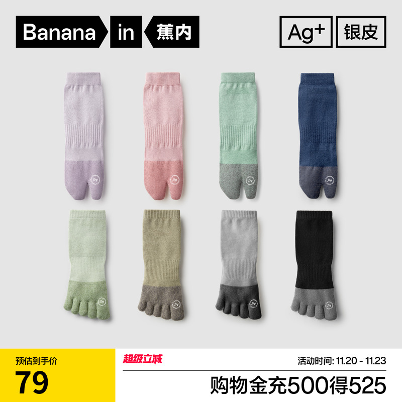 7A antibacterial|Banana inner silver leather 501S men's five-finger socks women's sports breathable thumb socks two-finger socks tabi socks