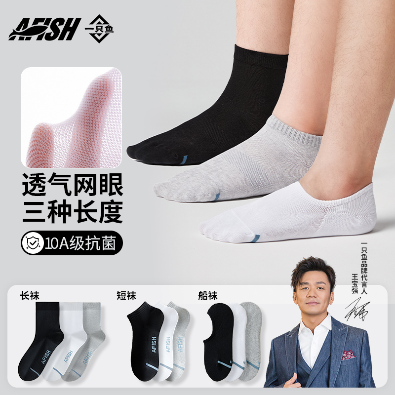 A fish sock men's summer thin men's mid-leg sports breathable sweat-absorbing anti-odor anti-athlete's foot short boat socks
