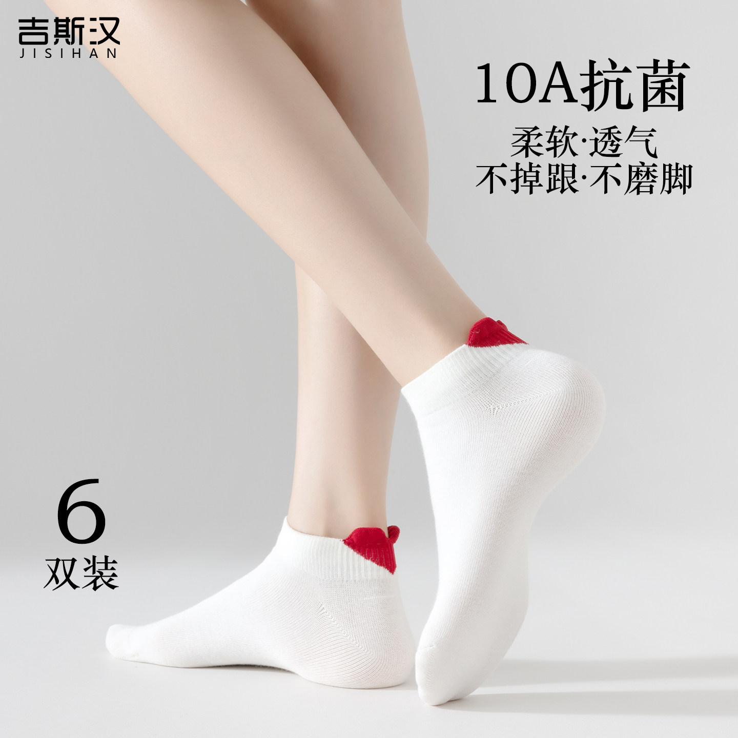 Socks women's pure cotton spring and summer 2026 new explosive anti-odor antibacterial sweat-absorbing thin embroidered white short socks for women