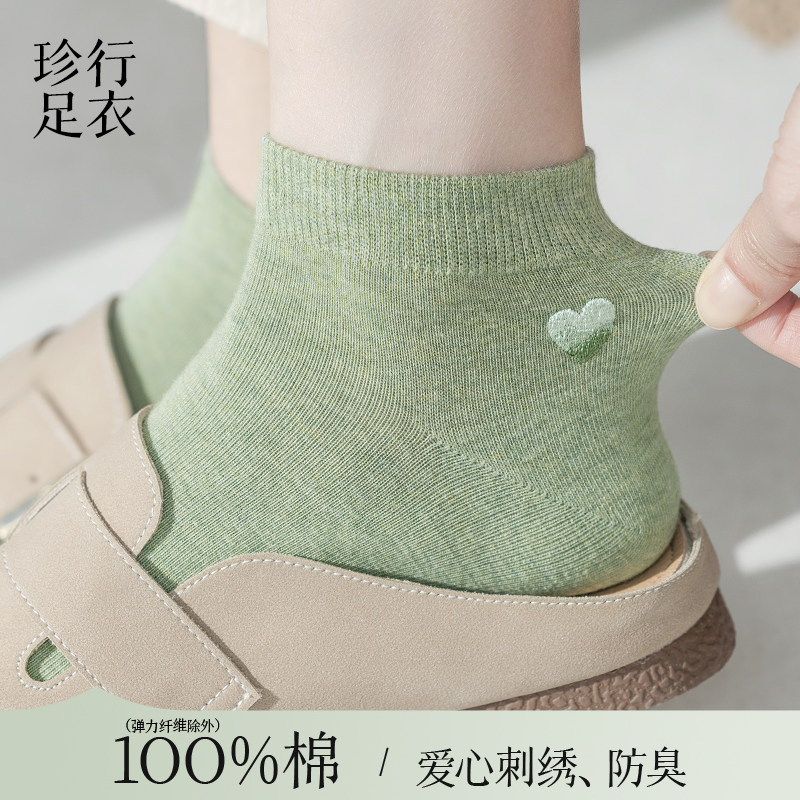100% cotton socks women's cotton socks spring and summer thin love embroidery women's white cotton socks are non-slip and do not fall off