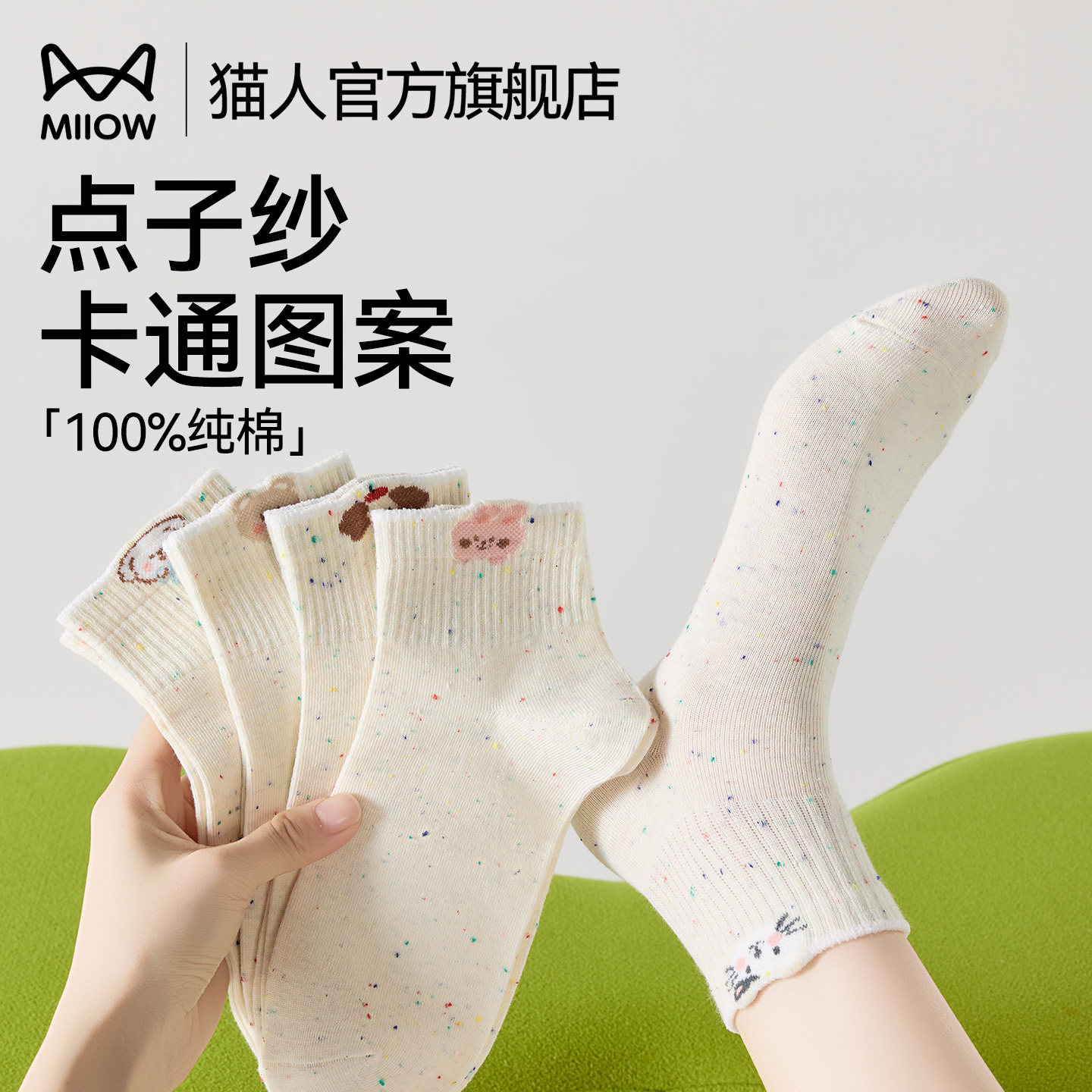 Cat Man Idea Yarn Socks Women's Summer Thin 100% Cotton Cotton Socks 2026 New Cartoon Women's Mid-Leg Socks