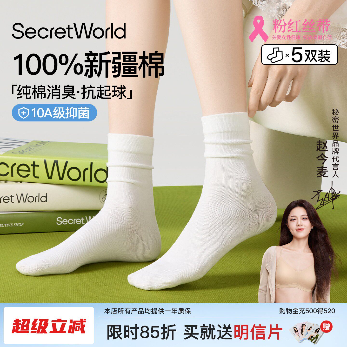 【Zhao Jinmai Same Style】Socks Women's Pure Cotton Spring and Summer Mid-Leg Socks Breathable, Anti-Odor, Anti-Pilling, Pile Socks