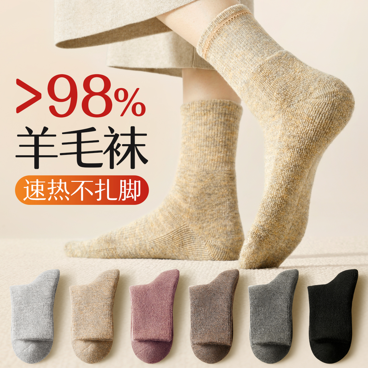 Mulberry silk wool socks women's autumn and winter mid-leg socks and coffee cotton socks thicken warm boneless confinement socks in winter