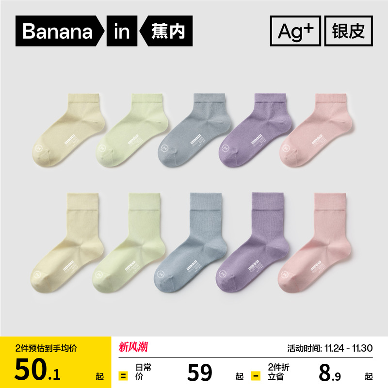 7A antibacterial|Banana silver leather 301S socks, women's medium socks, anti-odor sports breathable socks, autumn and winter stockings, cotton socks