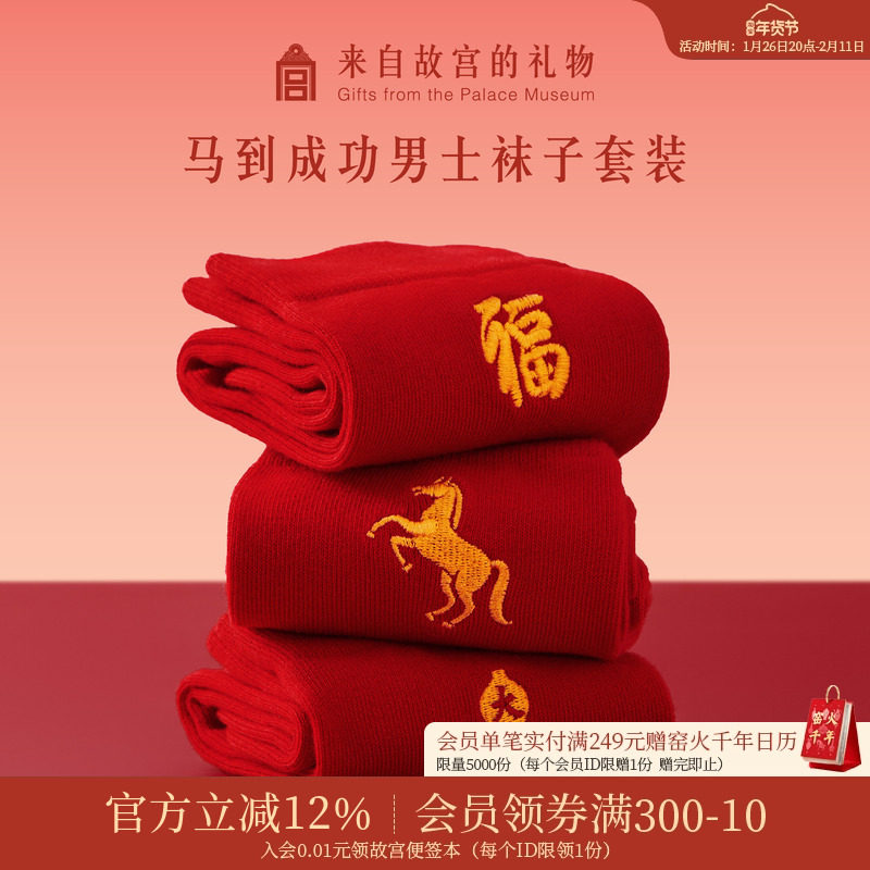 Forbidden City Taobao|Fuma Red Socks Set Horse to Success Men's Red Socks Gift Box Natal New Year New Year Gift