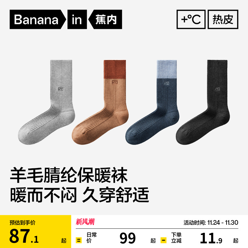 Banana hot leather 7 series wool socks for men and women sweat absorb odor and thicken heat autumn and winter stockings