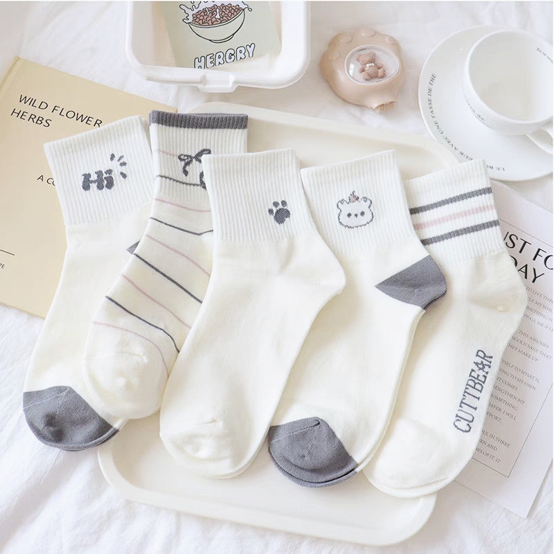 Cute socks women's autumn and winter solid color antibacterial mid-leg socks fungus lace idea yarn cartoon animal embroidery boneless