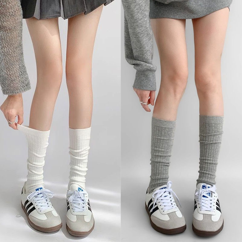 2026 new explosive calf socks stacked socks spring and summer thin long-leg women's preppy style white mid-leg socks