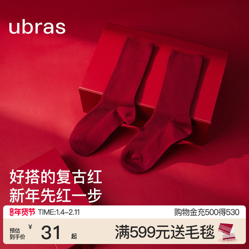 ubras red series - ribbed lycra mid-tube socks couple red men's and women's red socks for the year of the horse natal year 2 pairs