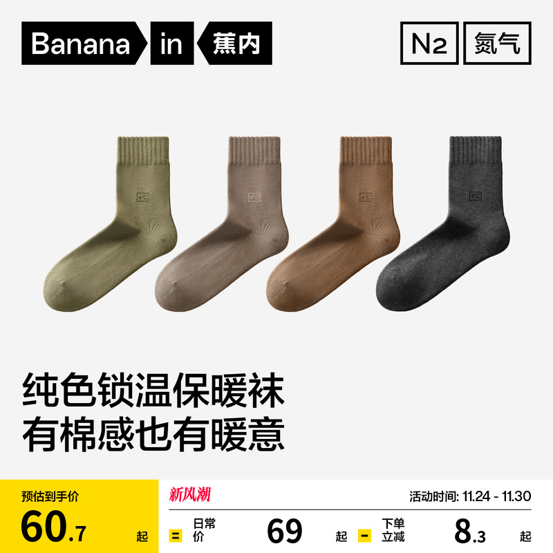 Lock heat and warmth|Banana inner hot leather 3 series mid-tube socks men's heat thickening socks sweat-absorbing and odor-proof terry socks cotton socks winter