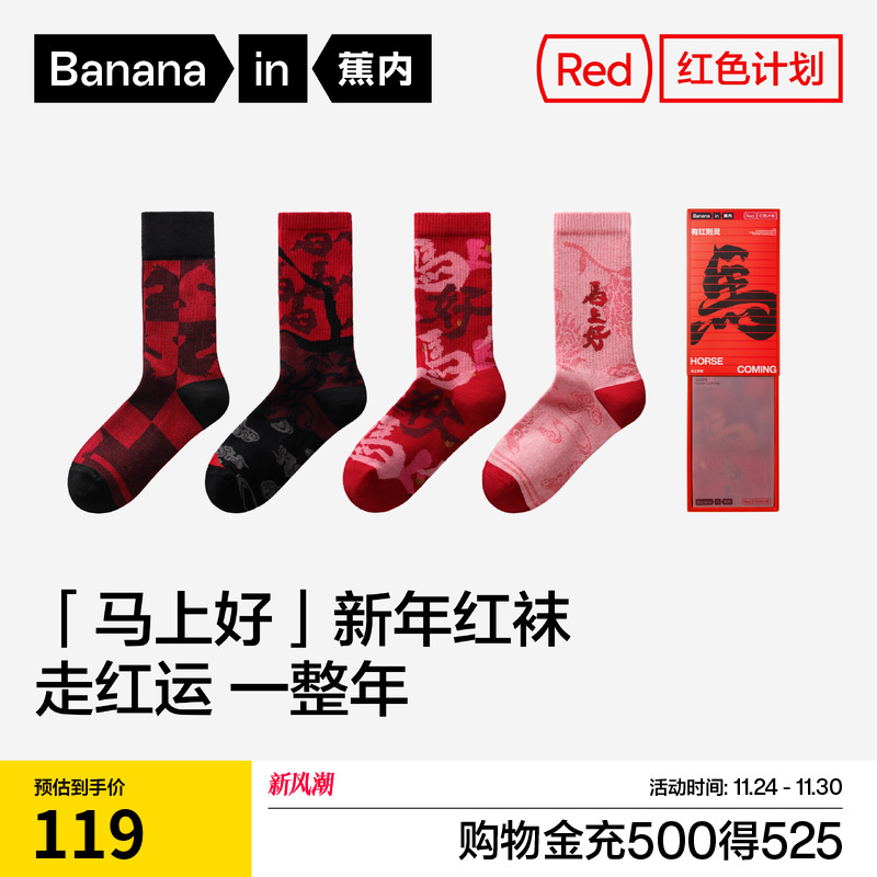 Banana red plan 520Color stockings for men and women couple socks wedding gift cotton socks for the Year of the Horse in the natal year