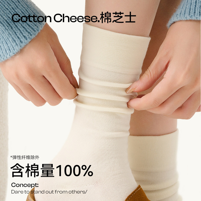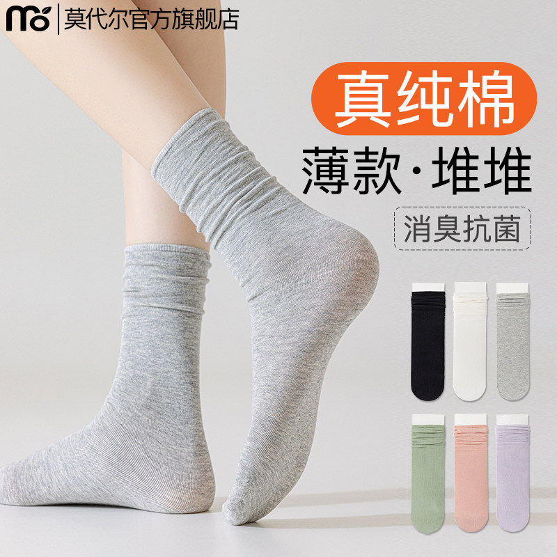 Cotton cheese cotton stacked socks women's summer thin medium socks boneless confinement socks white cotton stockings 100% cotton