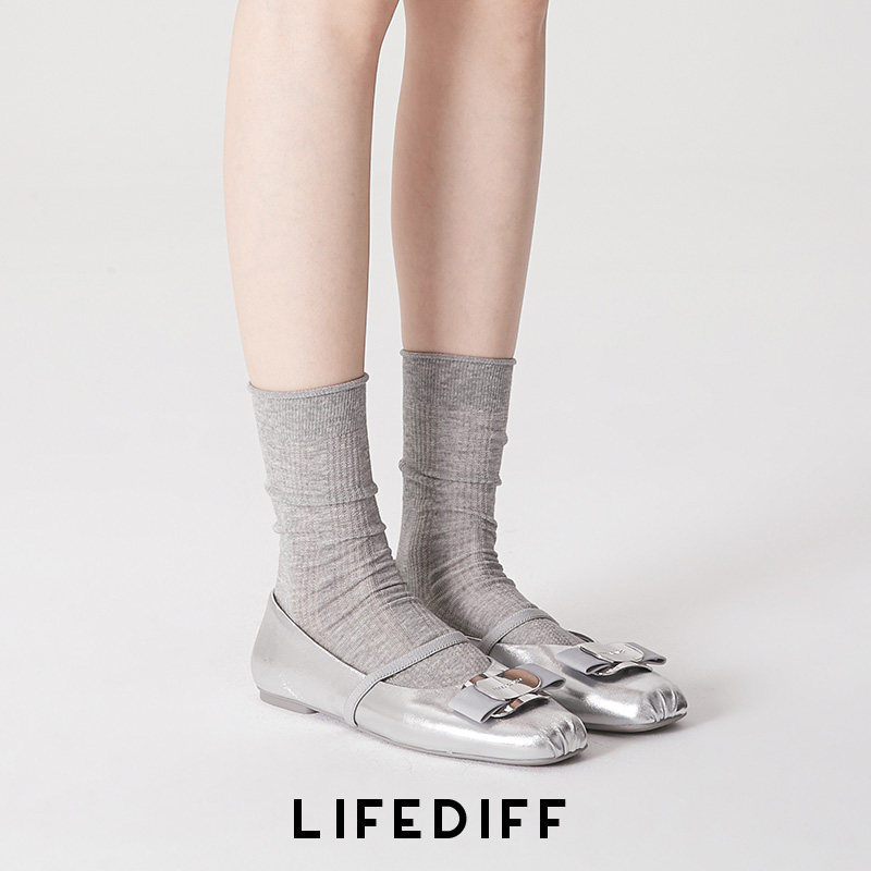 Thin Mary Jane socks, medium socks, women's light gray light and light breathable socks, summer curly hemmed socks, spring and summer stockings