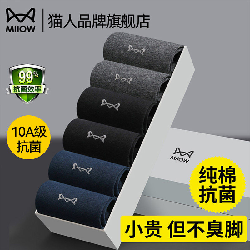 Cat Man Men's Socks Pure Cotton Mid-Socks Sweat-absorbing and anti-odor 7A antibacterial men's 2026 new explosive summer thin model