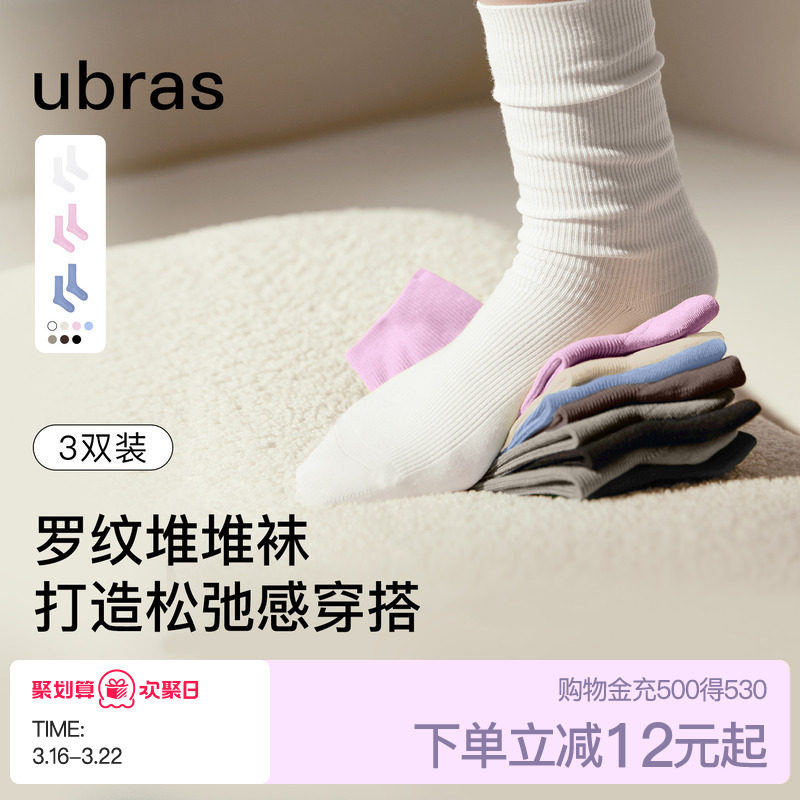 ubras versatile slimming pile socks spring and summer simple commuter socks breathable, odor-proof and comfortable white socks for women
